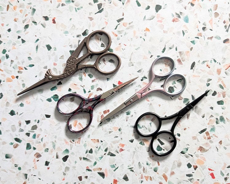 A pair of sharp embroidery scissors is crucial for clean cuts and preventing thread fraying. My favourites are stork scissors, not just for their precision but also because they add a bit of charm to my toolkit. Keeping them sharp is essential — read my guide, Take Care of Your Fabric Scissors, to make sure they stay in tip-top shape.