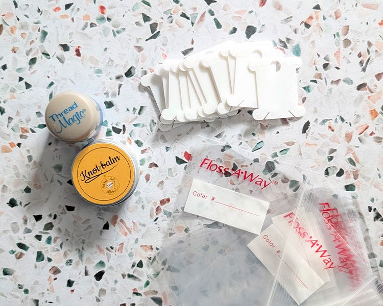 Keeping my floss organized and conditioned is a small but powerful habit that makes a huge difference in my stitching experience. I always wind my floss onto bobbins before I start, which helps keep the strands neat, prevents tangling, and makes it easy to see the colours I need at a glance.